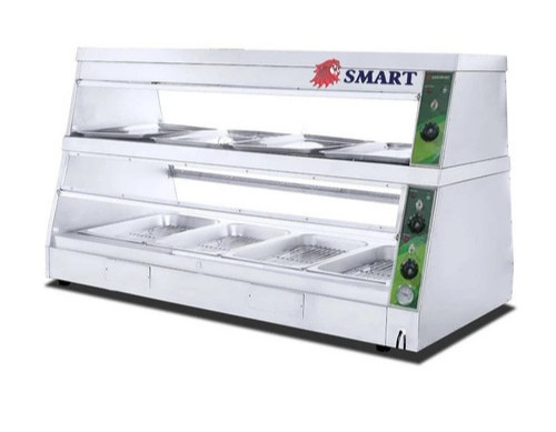 - زیر طبقه پایینی این گرمکن شیشه ای مرغ سوخاری 2 عدد حوضچه وجود دارد تا با ریختن آب در هر حوضچه طبقه پایین گرم کردن این طبقه به صورت مرطوب انجام شود اما طبقه بالایی این گرمخانه شیشه ای به صورت خشک برای نگهداری دیگر مواد غذایی می باشد.