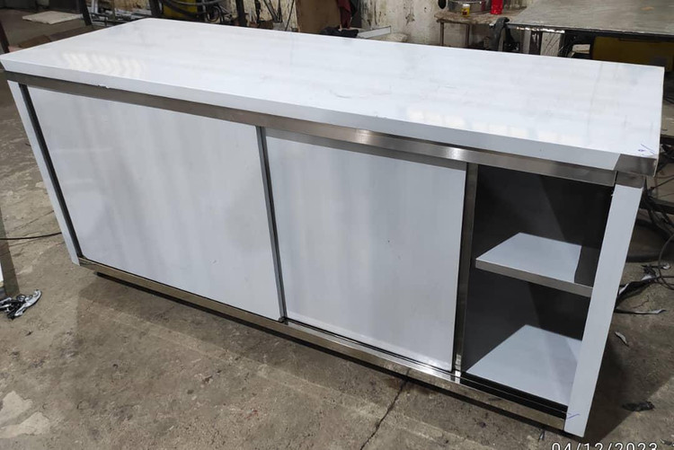 کابینت زمینی عرض ۶۵ سانت ارتفاع ۹۰ سانت در طول ۸۰سانت ۱متری ۱/۲۰ سانت ۱/۵۰ سانت ۲متری میباشد که کل بدنه استیل۴۳۰زد زنگ با زخامت ۸ دهم و داخل کابینت یک طبقه کف و یه طبقه وسط میباشد