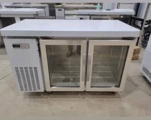 جنس بدنه این فریزر میزکاری استیل با ضخامت 8دهم 430 ضد میباشد زنگ با بدنه فوم تزریق درب شیشه ای دو جداره فول استیل دارای طبقه وسط با موتر ۳/۴ امبراکو و گاز 404 این یخچال تمام لوله مسی بوده و 1 سال ضمانت دارد دارای 4 عدد چرخ لاستیکی برای متحرک بودن